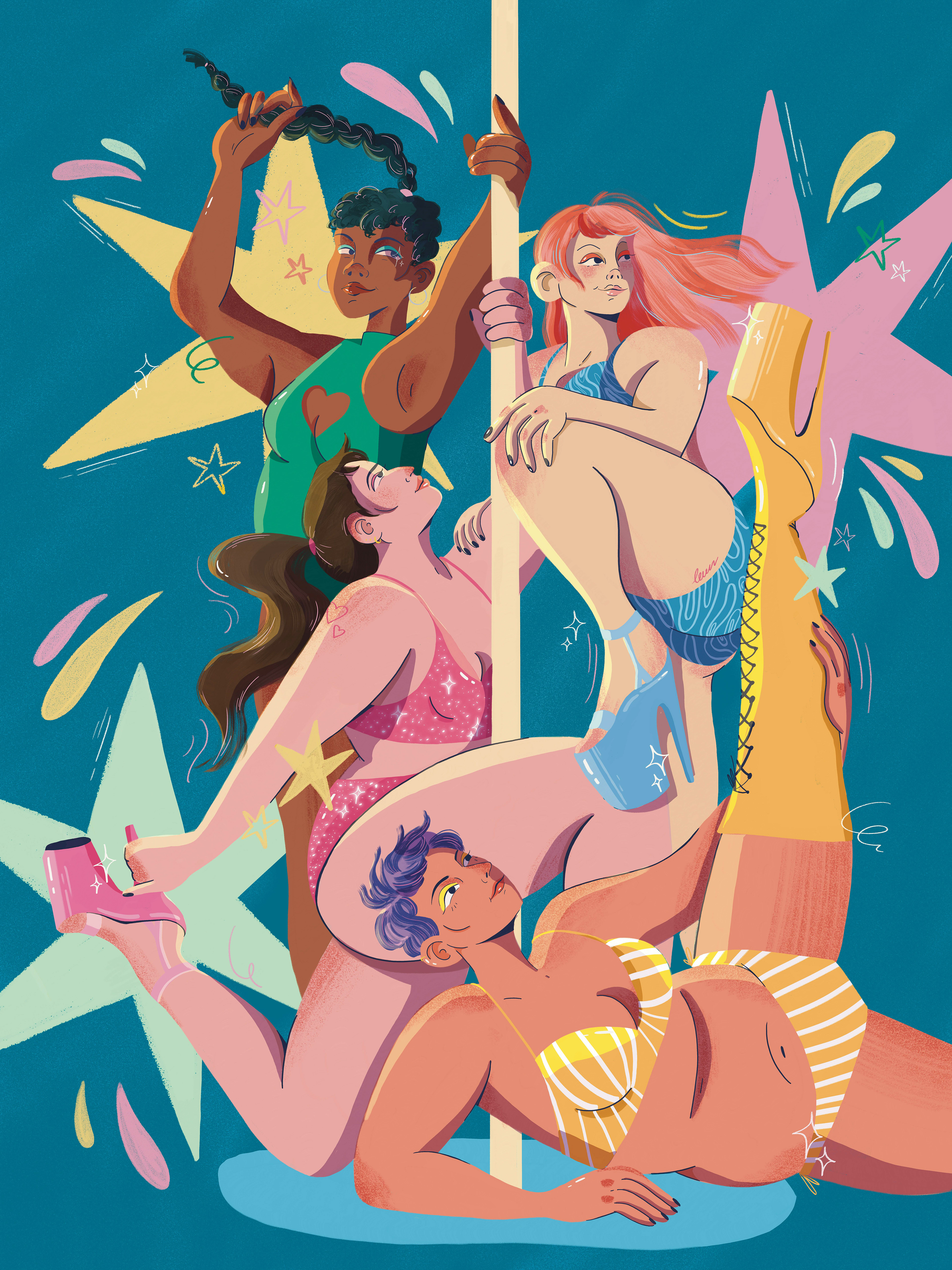 My poledance girls on display at Pieter Vreedenplein in Tilburg, during Illustrada 2024